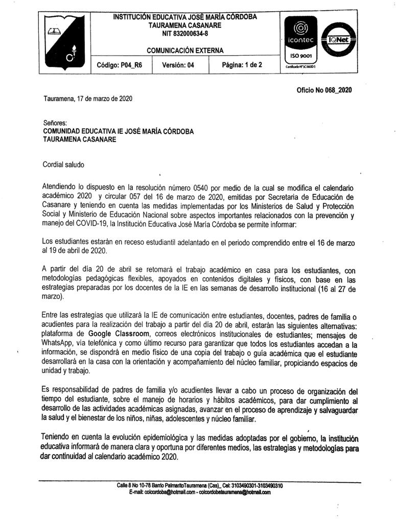 COMUNICACIÓN EXTERNA 068_2020_COMUNIDAD EDUCATIVA IE JOSE MARIA CORDOBA Enviar comentario Cancelar la respuestaTu dirección de correo electrónico no será publicada. Los campos obligatorios están marcados con *Comentario * Nombre * Correo electrónico * Web Δ Este sitio usa Akismet para reducir el spam. Aprende cómo se procesan los datos de tus comentarios.