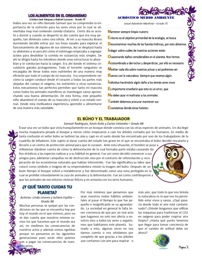 • Jhon Alejandro Meza Muñoz en Gaceta Ecológica Primera Edición 22 de Marzo Dia Mundial del Agua